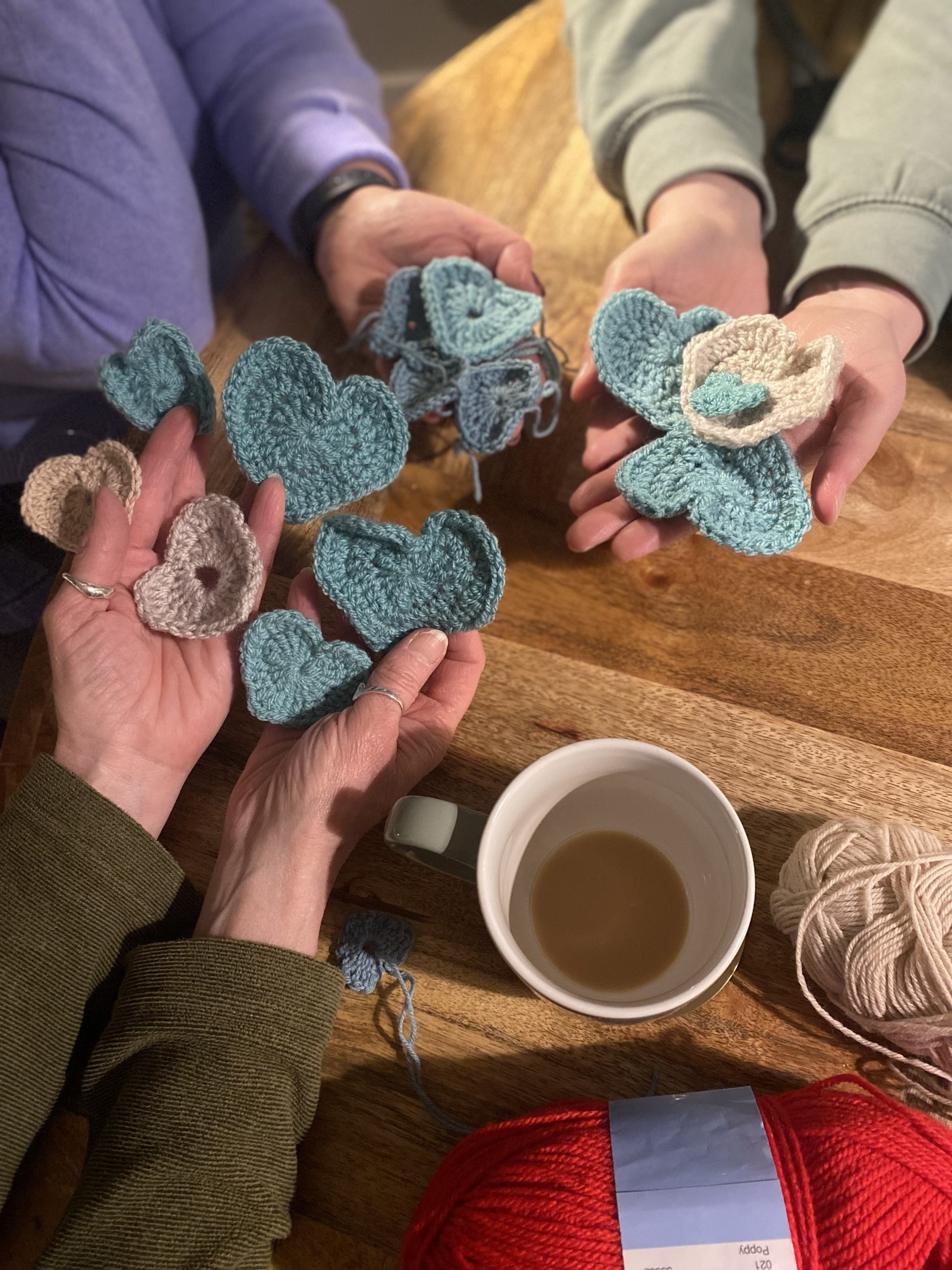 We also held crochet workshops where community members came together to learn, share skills, and crochet hundreds of small hearts that were included in the care packs. These handmade items added a personal and compassionate touch, symbolising care, remembrance, and community support.